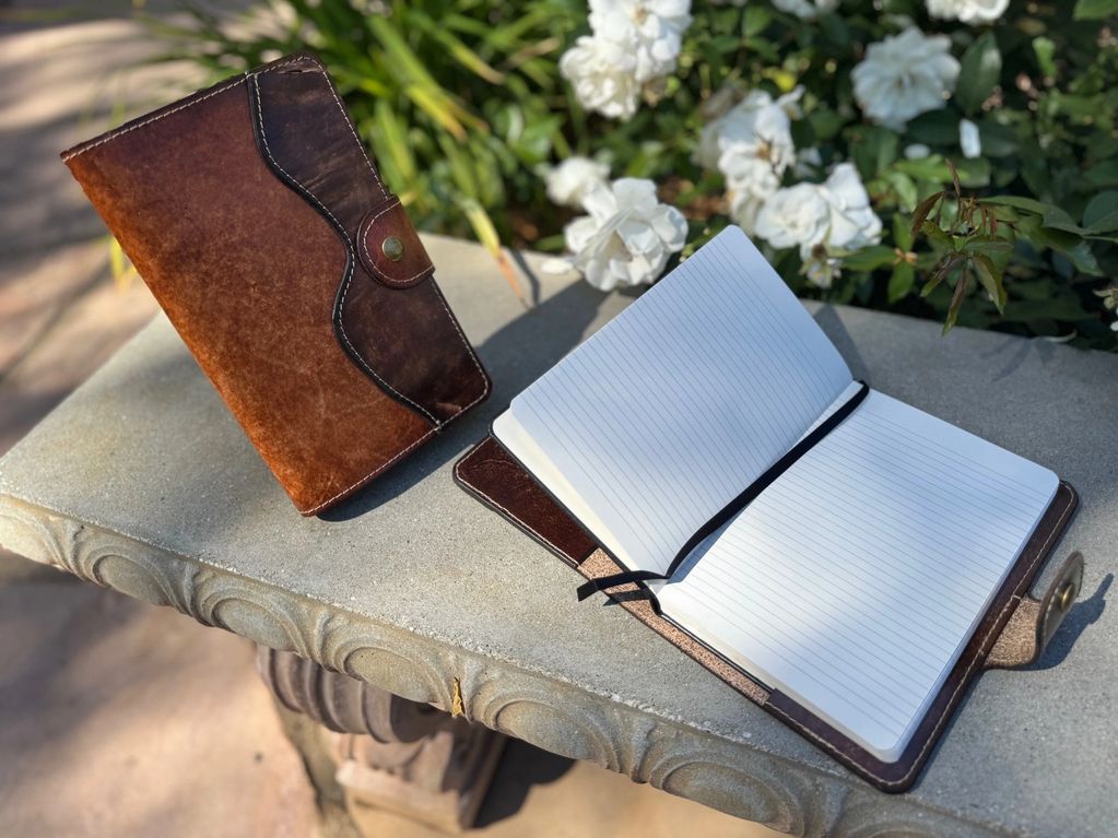 Hard-back, lined journal can be easily refilled when full. Will fit any market-standard 8.25" x 5" journal insert.